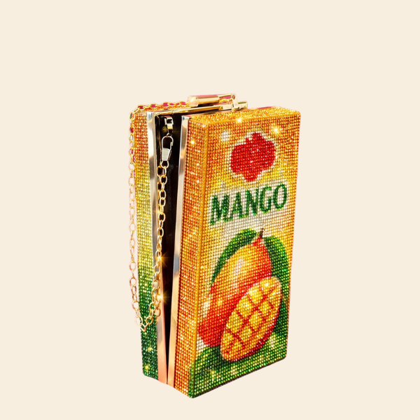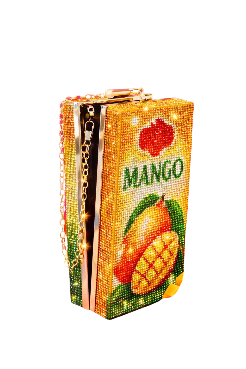 Inspired by the mango juice boxes we all loved as kids — this clutch is a nostalgic nod to simpler times and the joy of small things. It's playful, a little extra and made to stand out.